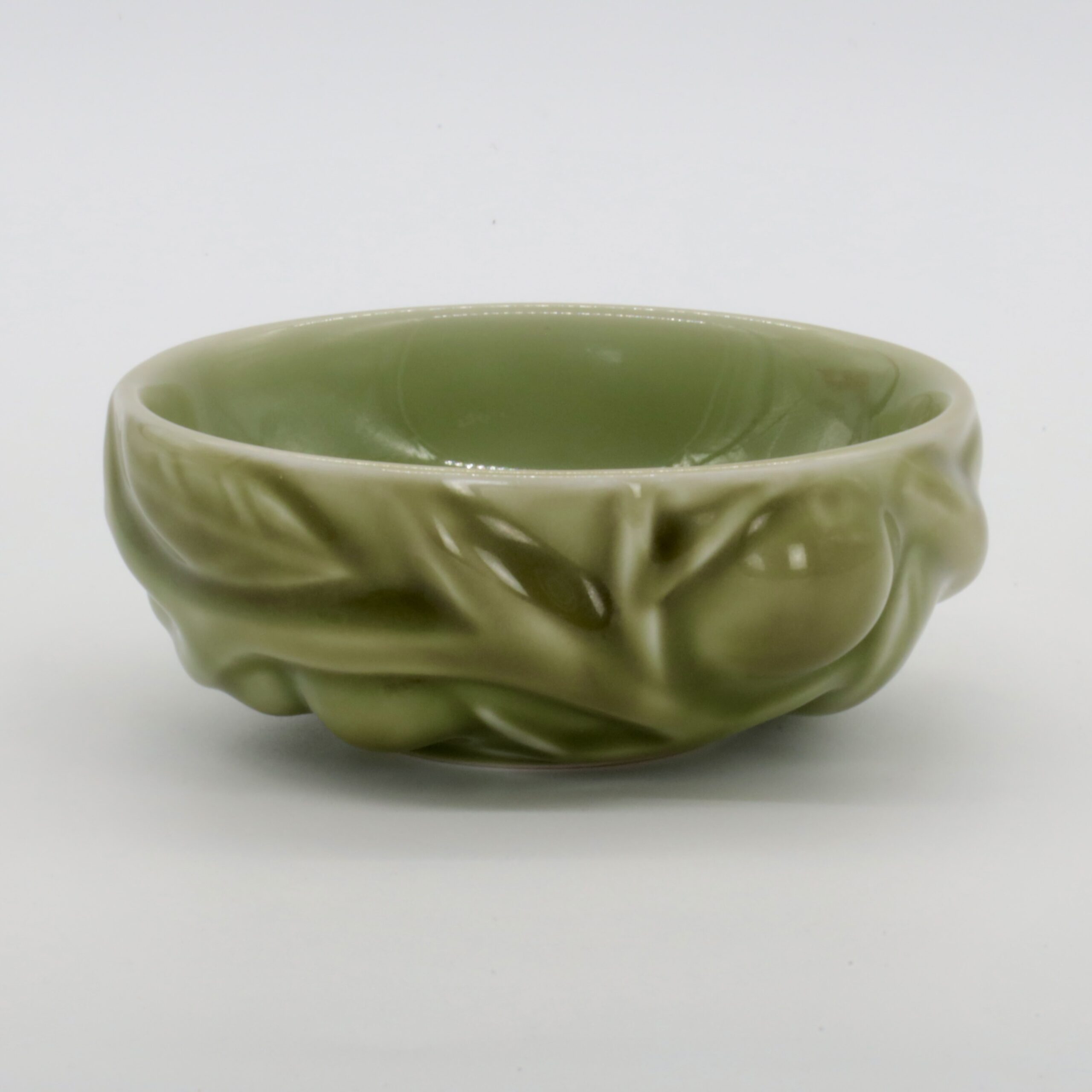 Skål modelleret i spirrende stil dekoreret med celadon glasur.