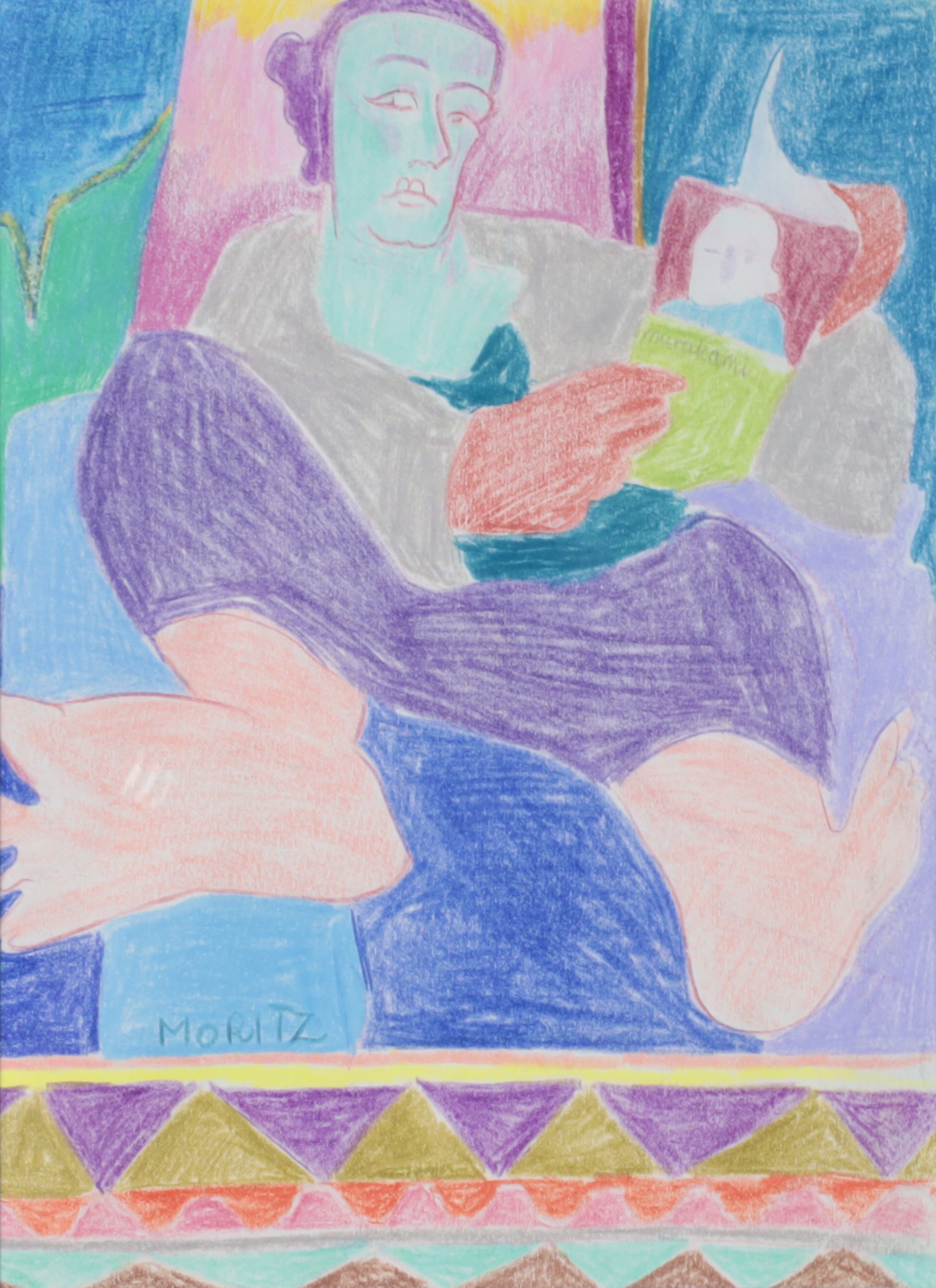 Murakami. Interiør med læsende kvinde.