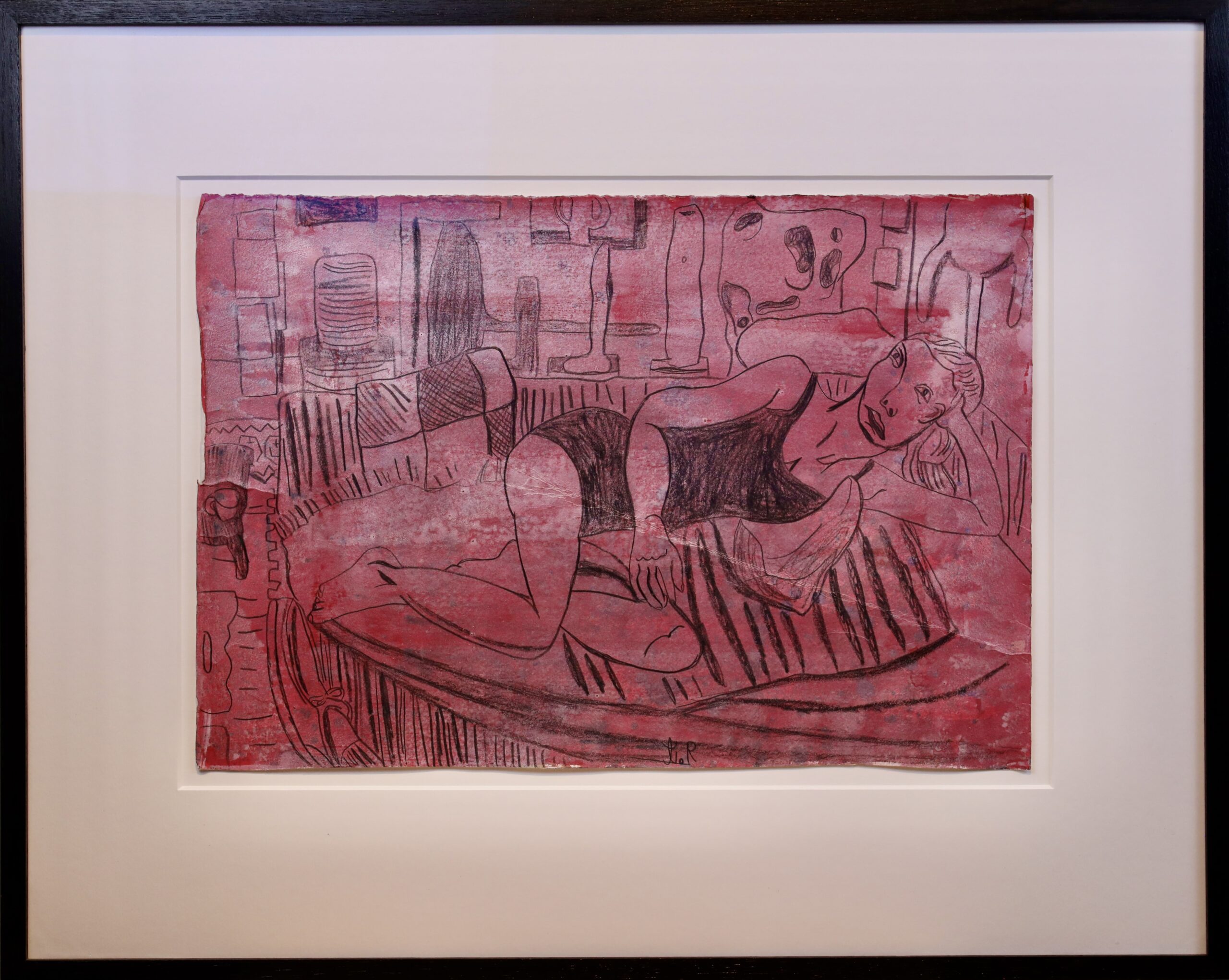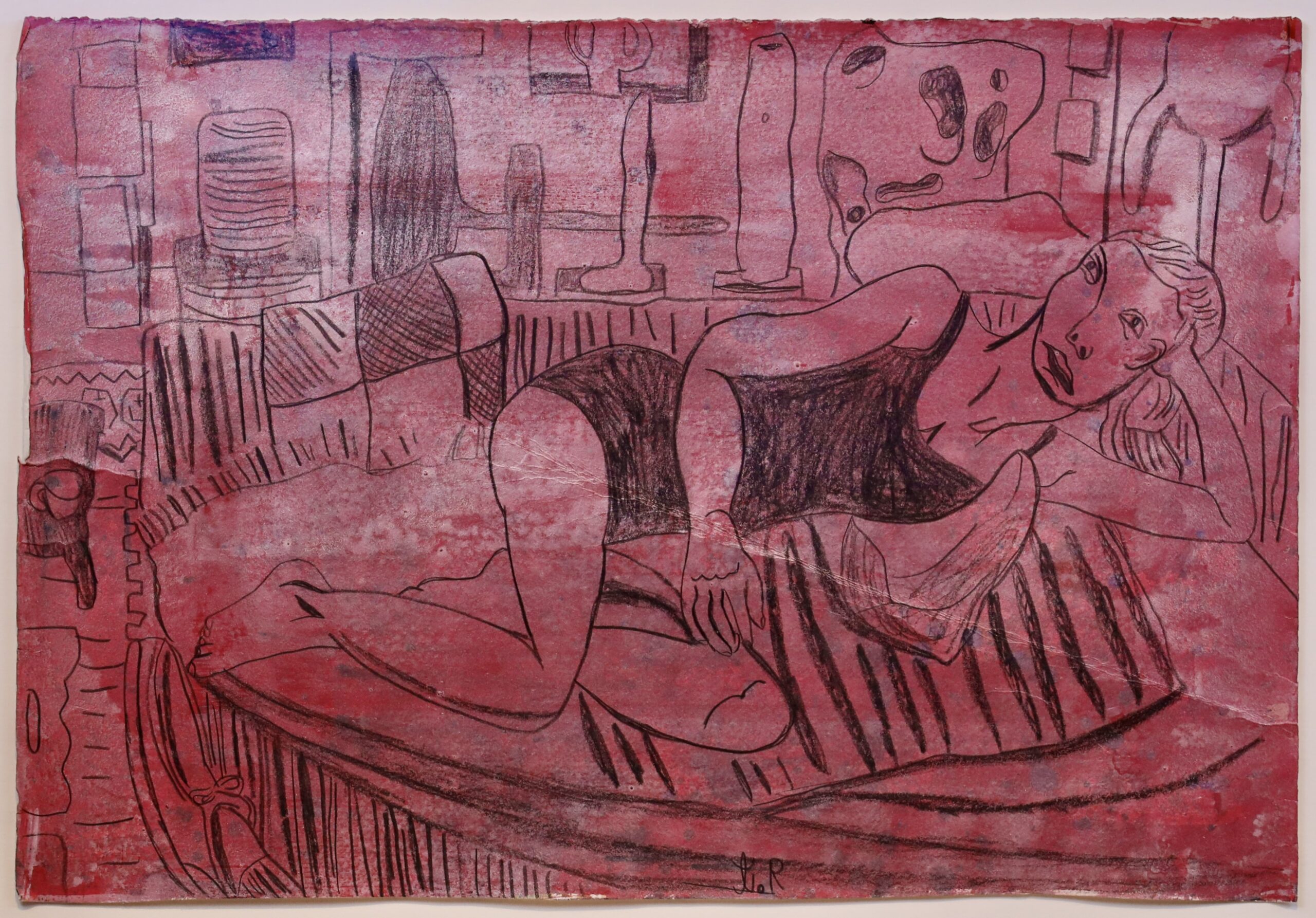Farvekridt, pigment og harelim på papir.